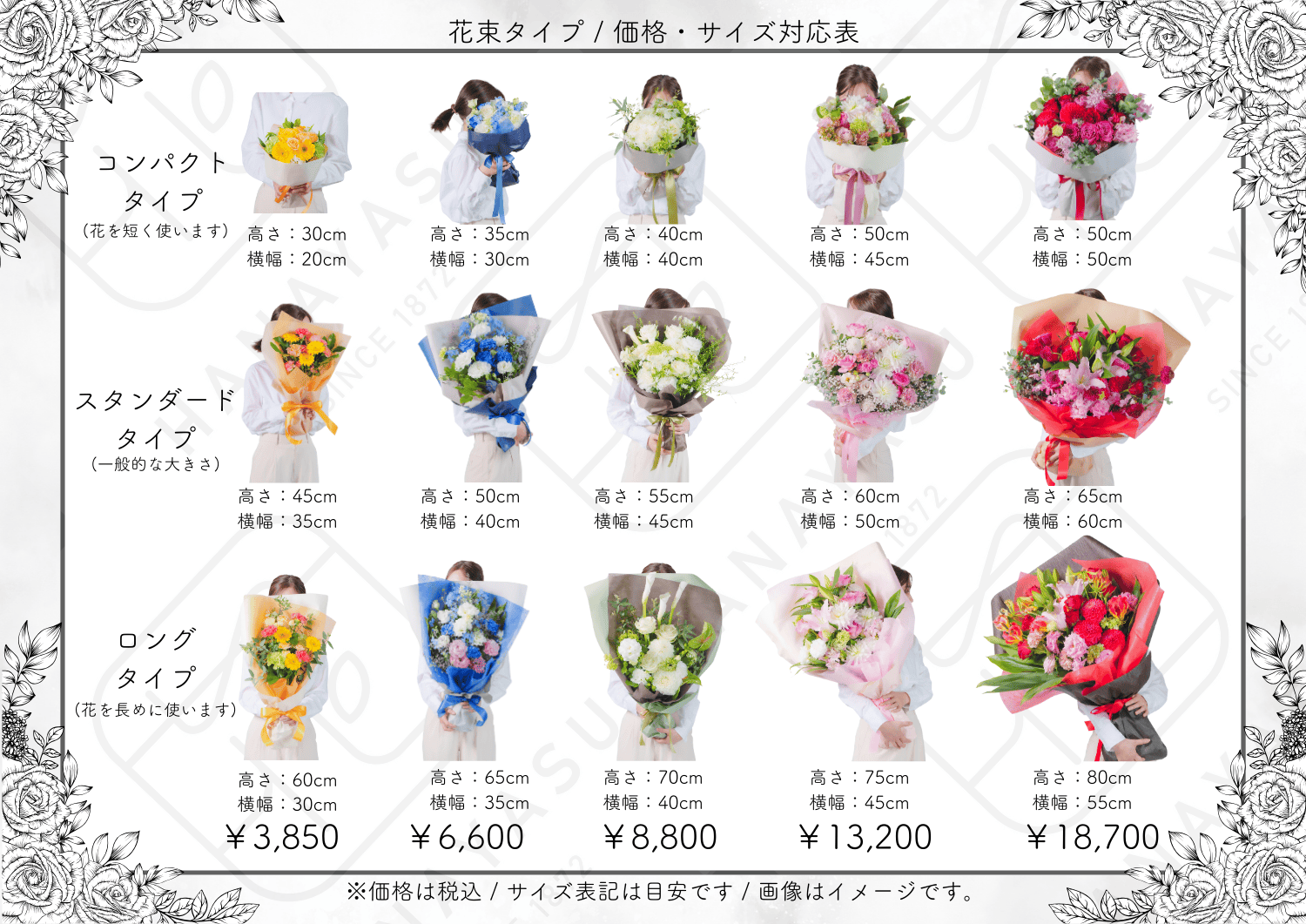 ※成人式前はお花が高騰しますので、あくまで目安としてご参考にして下さい。