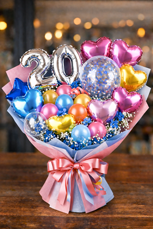 「20」の数字を入れたバルーンなどは、成人という節目が伝わりやすく大変人気です。