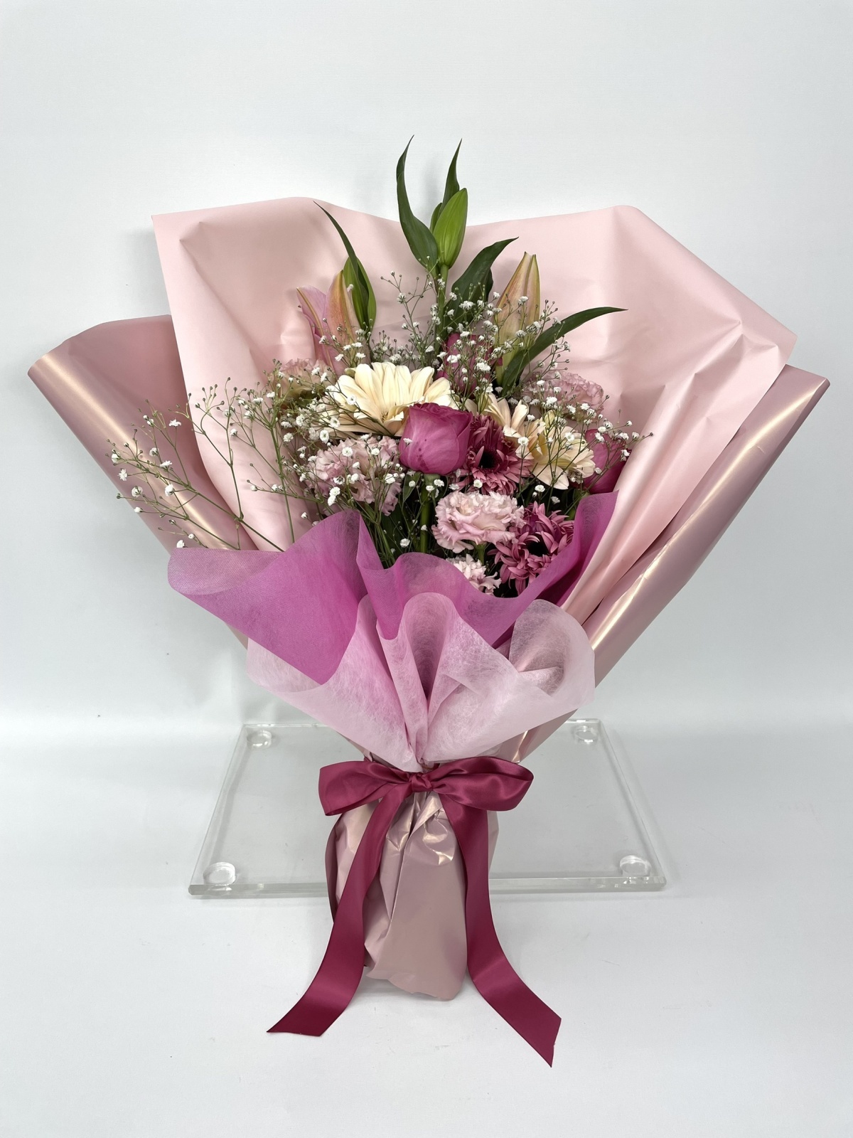 卒業式用にピンク系でまとめた花束です。